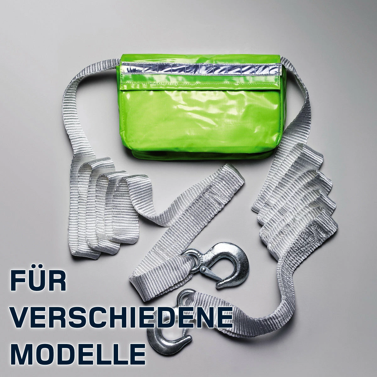 Abschleppgurt mit Tasche, die als Warnflagge am Gurt befestigt werden kann.
