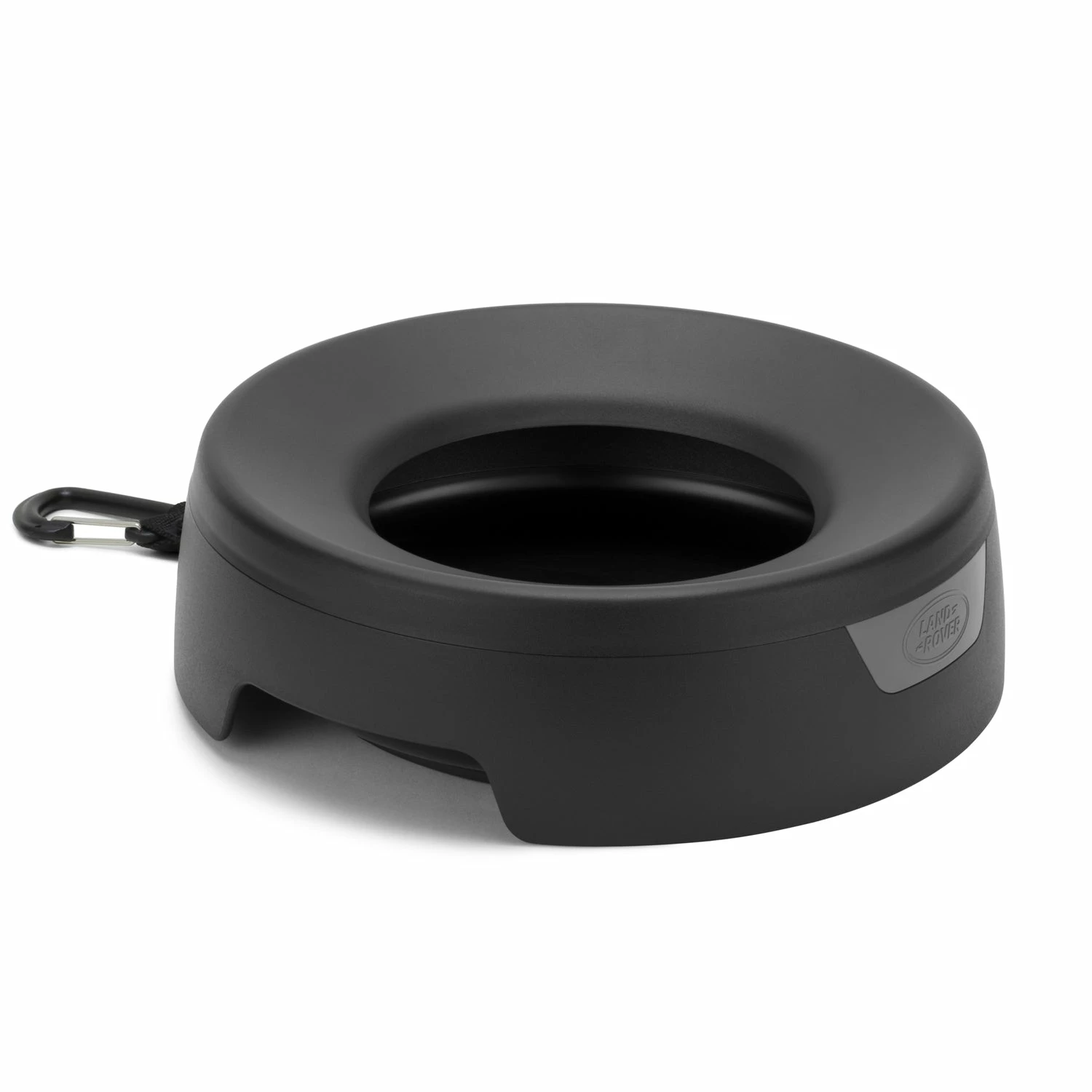 Der auslaufsichere Hundenapf von Land Rover für unterwegs. Das clevere Design verhindert, dass Wasser bei unruhiger Fahrt aus dem Napf läuft. Ein rutschfester Gummiboden und ein Haltegurt, mit dem er an der D-förmigen Öse im Laderaum befestigt wir, verhindern ein Rutschen durch den Gepäckraum.