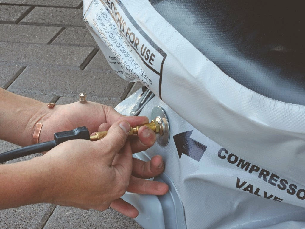 - Um ihn mit Luft zu befüllen verwendet man einen Kompressor.
