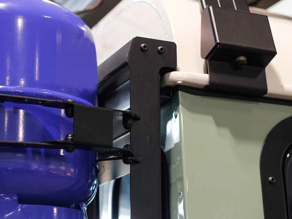 Einfaches und sicheres Transportieren einer Gasflasche an Deinem Land Rover Defender 90 & 110 mit Hilfe der Regenrinnen-Halterung.