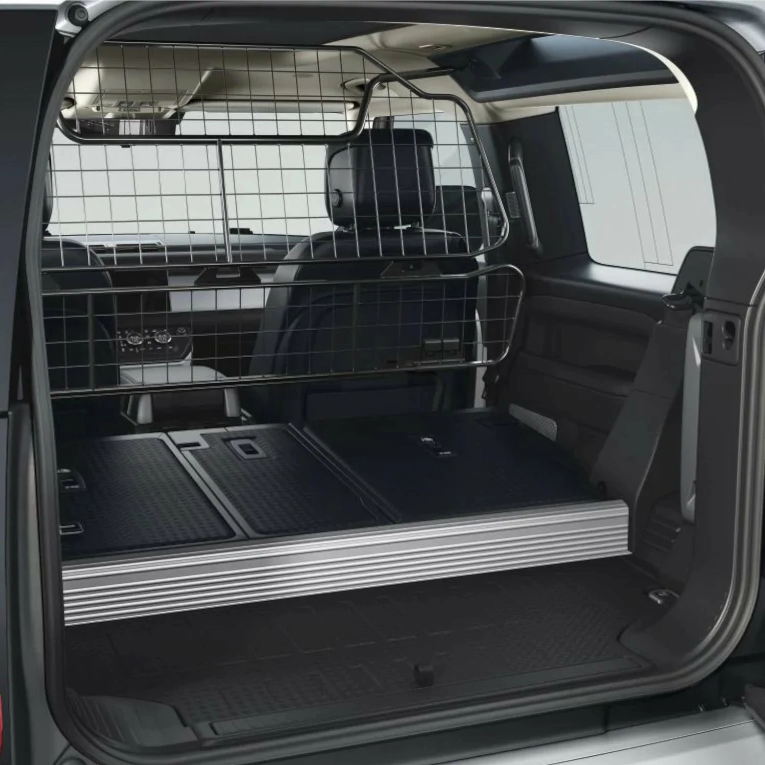 Für den New Defender 90 wird das Gitter hinter der ersten Sitzreihe montiert, beim New Defender 110 wird das Gitter hinter der zweiten Sitzreihe montiert.
