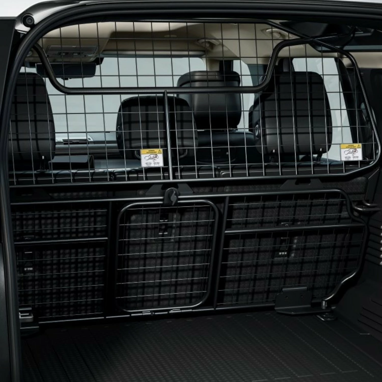 Das Gepäck-/Hundeschutzgitter verhindert, dass Tiere oder Gepäck in den Fahrgastinnenraum gelangen und beinhaltet eine Zugangsklappe für die Ski-Durchreiche.