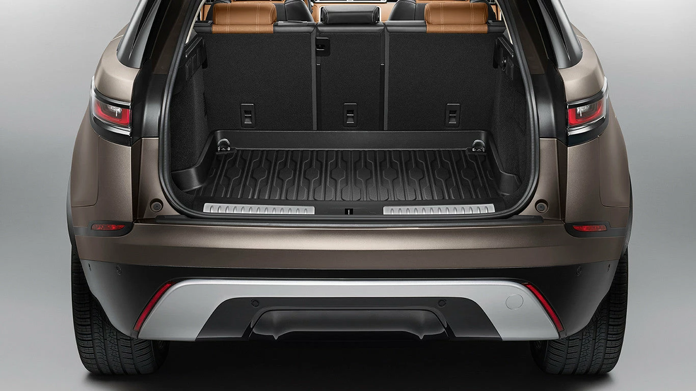Die halbsteife, wasserdichte Original Range Rover Velar Gepäckraumwanne schützt den Boden sowie die mit Teppich ausgekleideten Seitenwände des Laderaums vor Nässe und Schmutz.