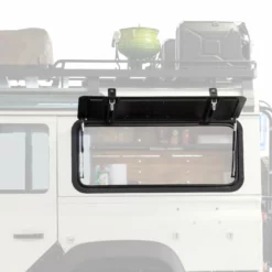 Das Front Runner Gullwing Fenster ersetzt die hintere Seitenscheibe Deines Defenders. Dies ermöglicht den einfachen Zugriff von der äußeren Fahrzeugseite auf den Laderaum.