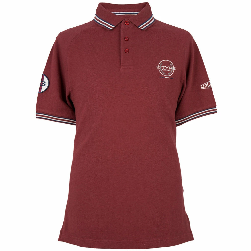 Das Polo-Shirt ist mit dem E-Type Branding versehen, zudem hat es Rennstreifen an den Ärmeln und dem Kragen.