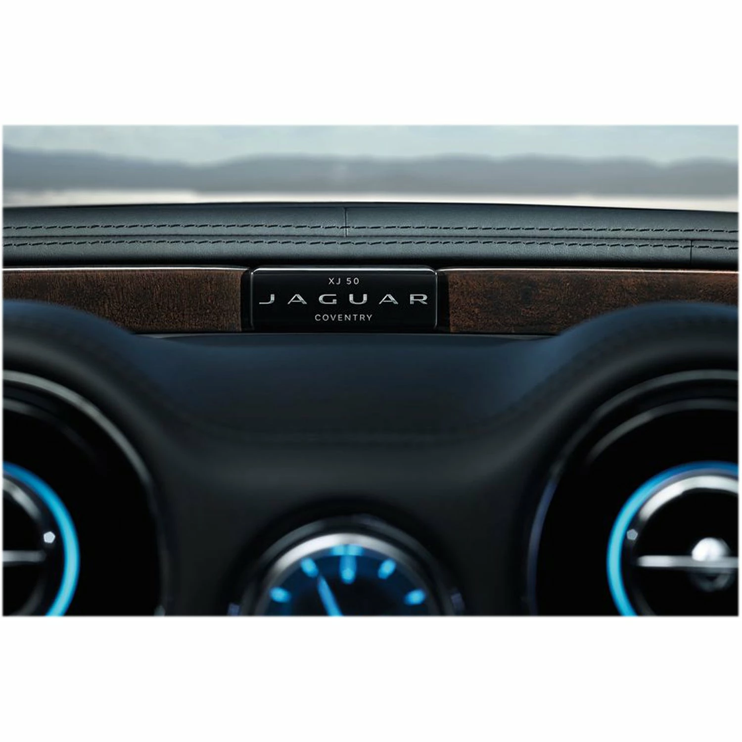 Dieses kleine polierte Chrom-Emblem sitzt in der Mitte, unterhalb der Windschutzscheibe Ihres Jaguar XJ und ist in das gewölbte Armaturen-Paneel eingelassen.