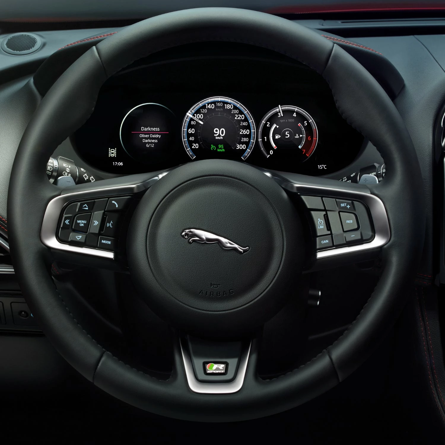 Originaler Jaguar Multi-Funktions-Lenkrad mit „R-Sport“ Branding mit kleinen Akzenten in Silber und aus Soft Grain Leder. Diese können für manuelle Schaltgetriebe oder Automatikgetriebe verwendet werden. Sie können zwischen beheizbaren Modellen wählen.