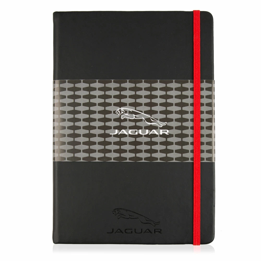 Original Jaguar Notizbuch in der Farbe Schwarz mit roten Applikationen.
