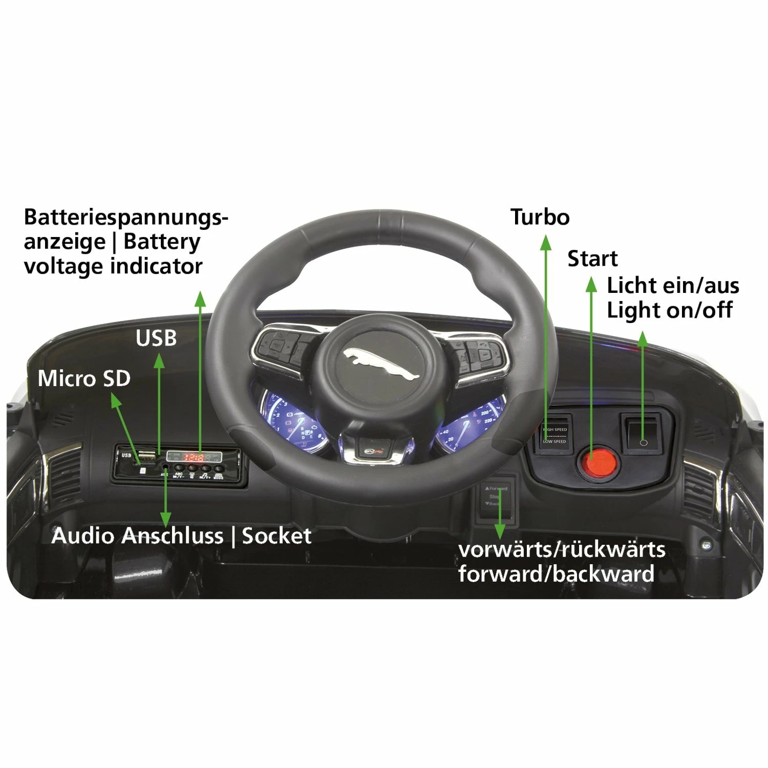 Das Kinderauto „Jaguar F-Type SVR“ für den Jaguar-Nachwuchs.
