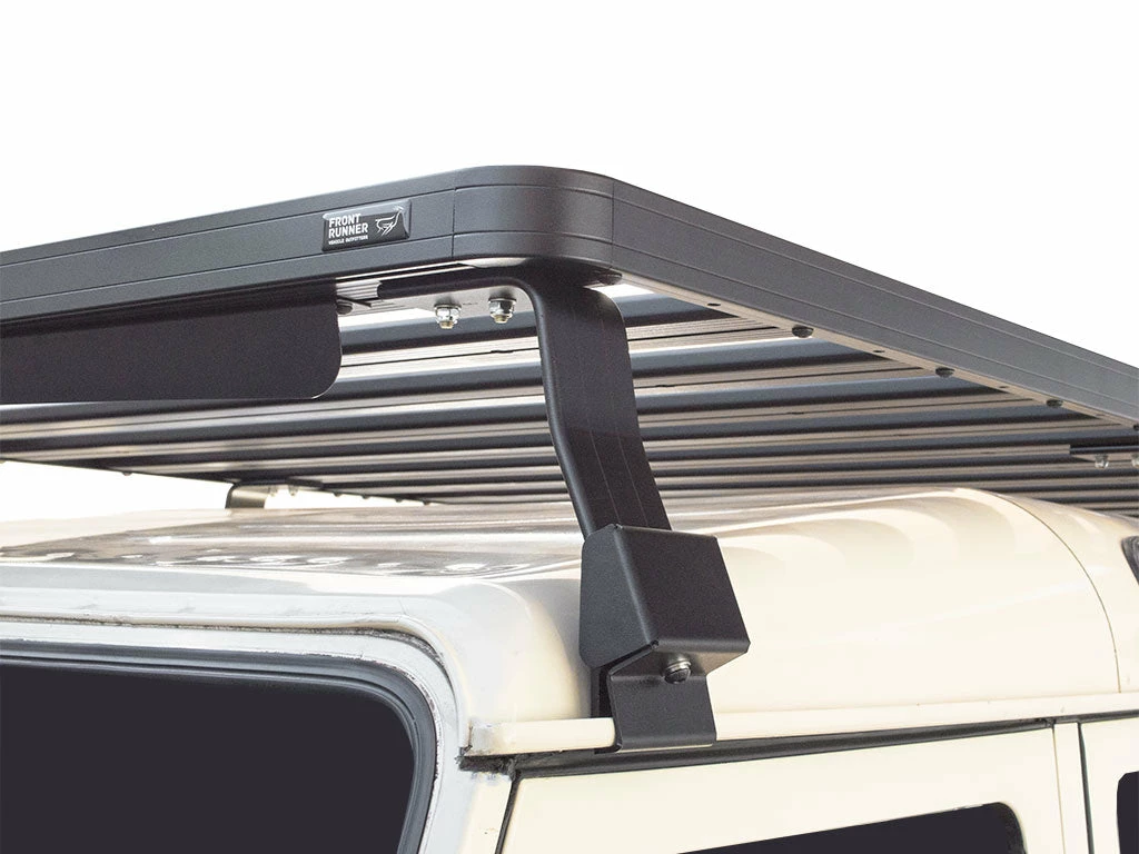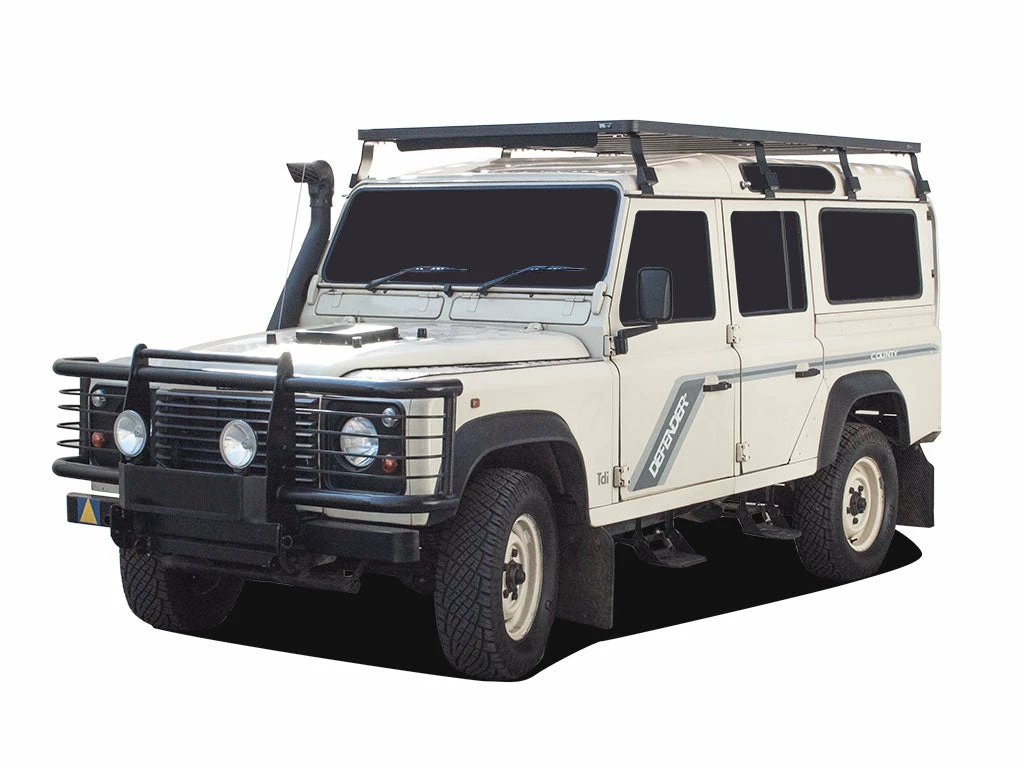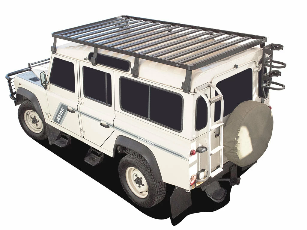 Dieses 2772 mm (L) x 1425 mm (B) große Slimline II Dachträger Kit beinhaltet die Slimline II Plattform, einen Windabweiser sowie 4 Befestigungsfüße (Paare), mit denen Du die Plattform auf Deinem Land Rover Defender 110 (1983 – 2016) montieren kannst. Dieses Kit ist höher und bietet Platz für die Montage von Front Runner Campingtischen oder anderer kompatibler Ausrüstung unter dem Dachträger. Das System lässt sich leicht mit den offroadtauglichen Füßen installieren. Es ist kein Bohren erforderlich.