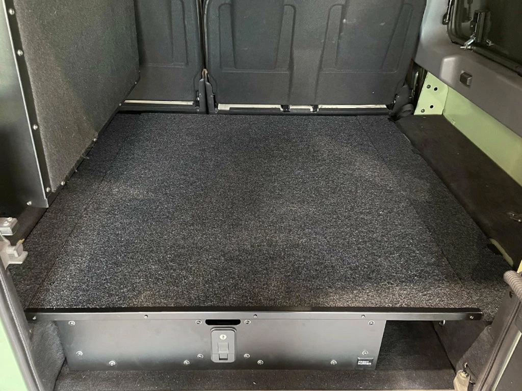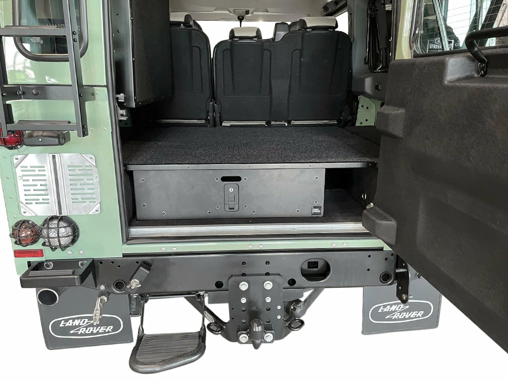 Mach die Aufbewahrung und Organisation Deiner Ausrüstung und anderer Gegenstände zu einem Kinderspiel. Diese abschließbare Schublade mit eingebautem Deck wurde speziell für den Land Rover Defender 90 / 110 (2007 – 2016) entwickelt. Schütze Deine Gegenstände vor neugierigen Blicken und schaffe gleichzeitig mehr nutzbaren und leicht zugänglichen Stauraum in Deinem Fahrzeug. Widerstandsfähige Konstruktion für den Einsatz auf und abseits der Straße.