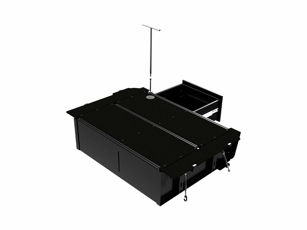 - Auf der Abdeckung des Schubladensystems können auch Front Runner Kühlboxschienen/ Auszüge verbaut werden.
