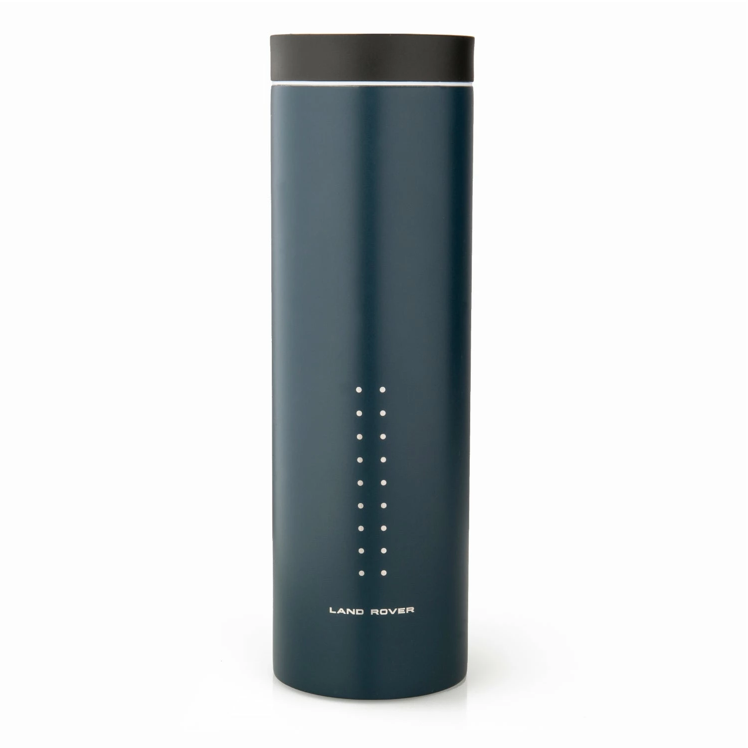 Wasserflasche aus Edelstahl mit Land Rover Logo und geometrisch-graphischen Details.