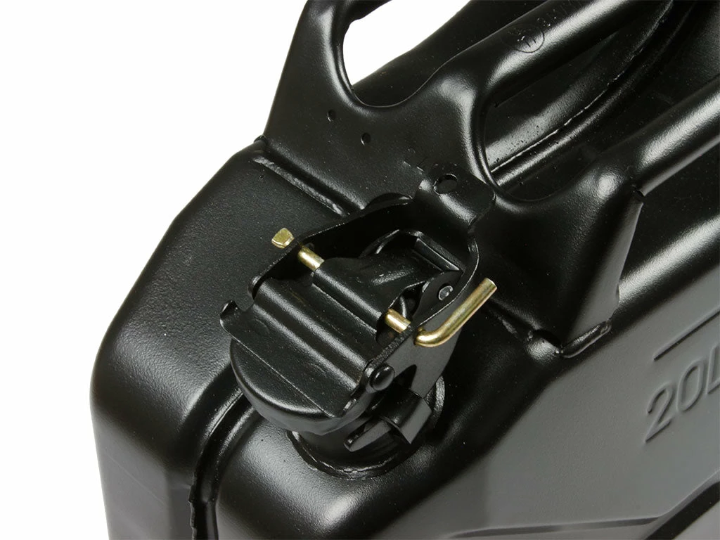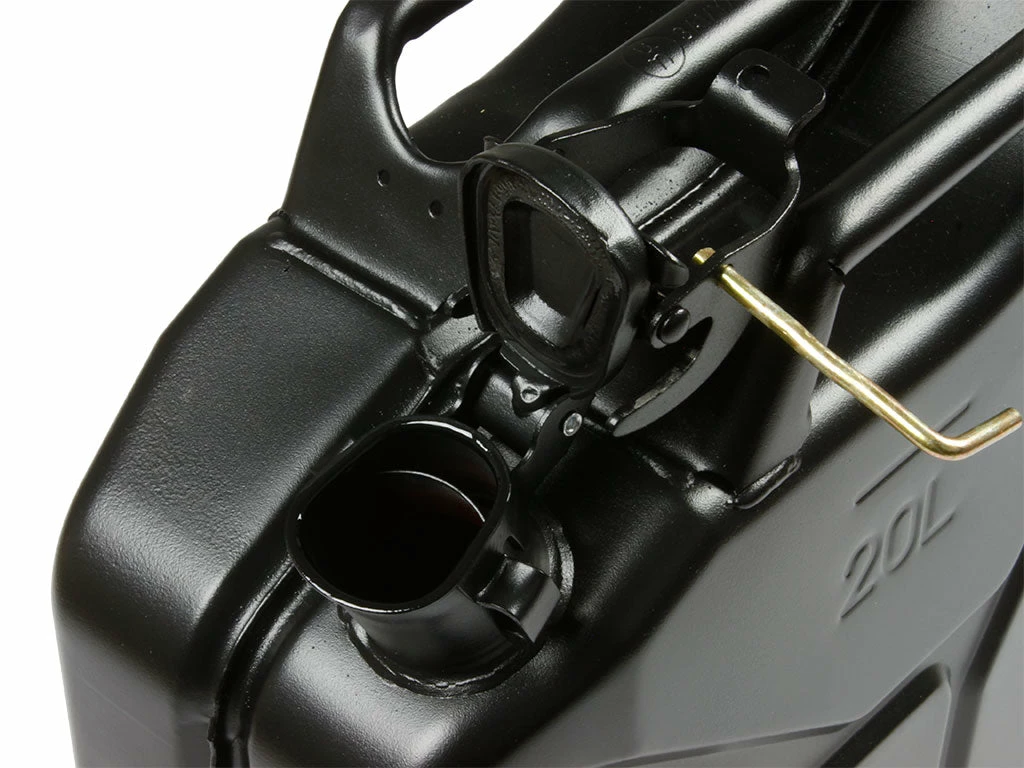 Klassischer 20L Front Runner Stahl-Reservekanister im Wedco-Style in schwarz.