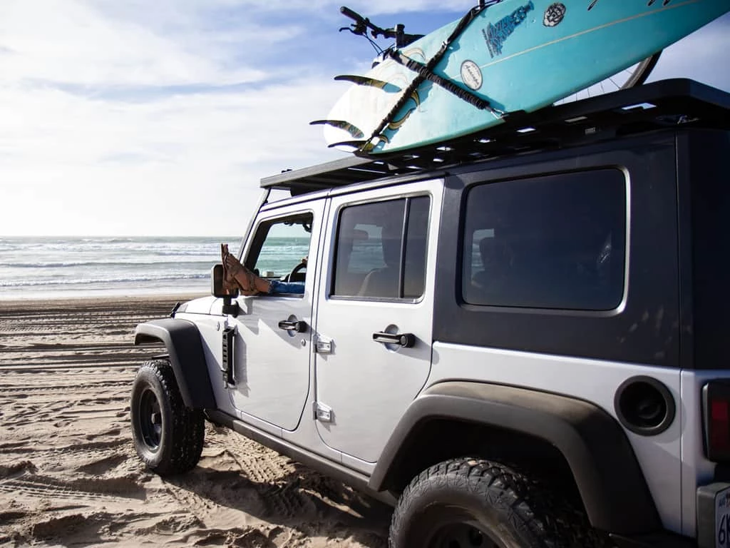 - Wenn noch genug Platz auf dem Dachträger sein sollte, können die Vertikal-Halterungen auch auf dem Slimline II auch genutzt werden, um größere Windsurfboards zu transportieren.