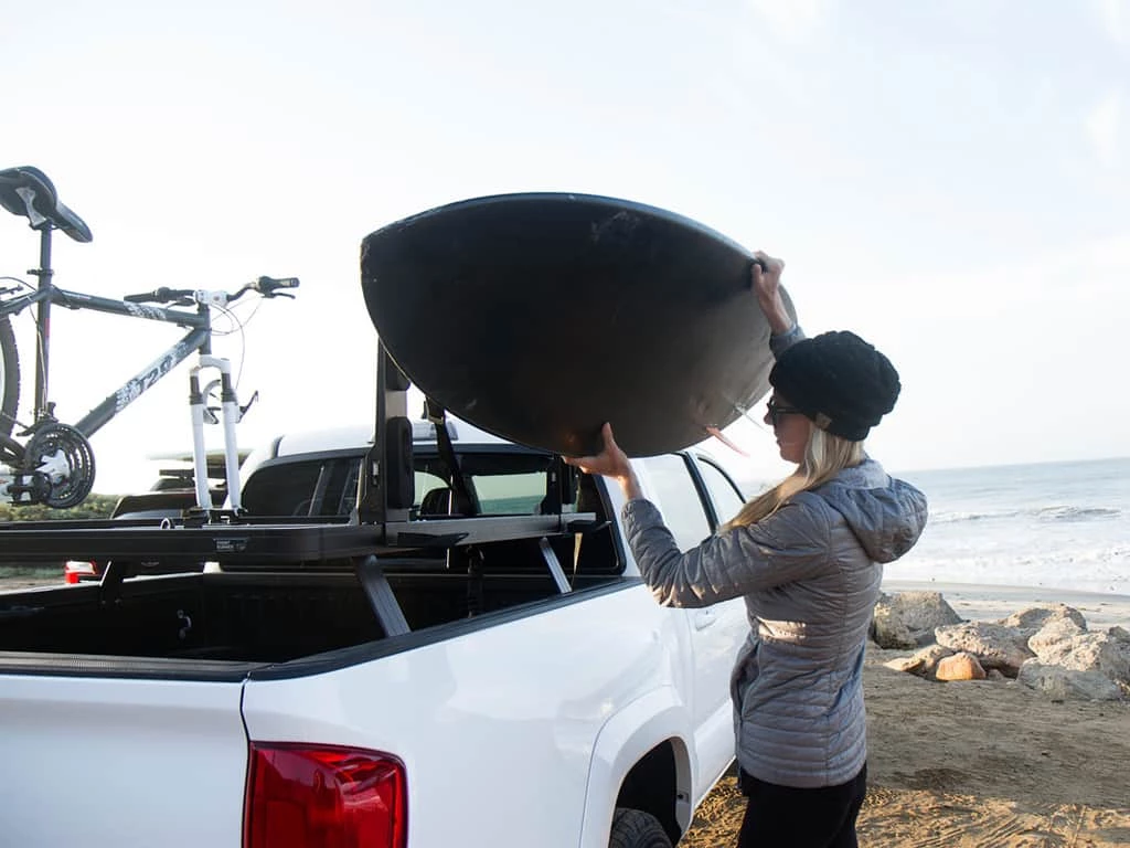Diese beiden bewegbaren Halterungen sorgen dafür, dass Dein Surfboard auf einer Seite Deines Front Runner Slimline II Dachträgers befestigt werden kann.