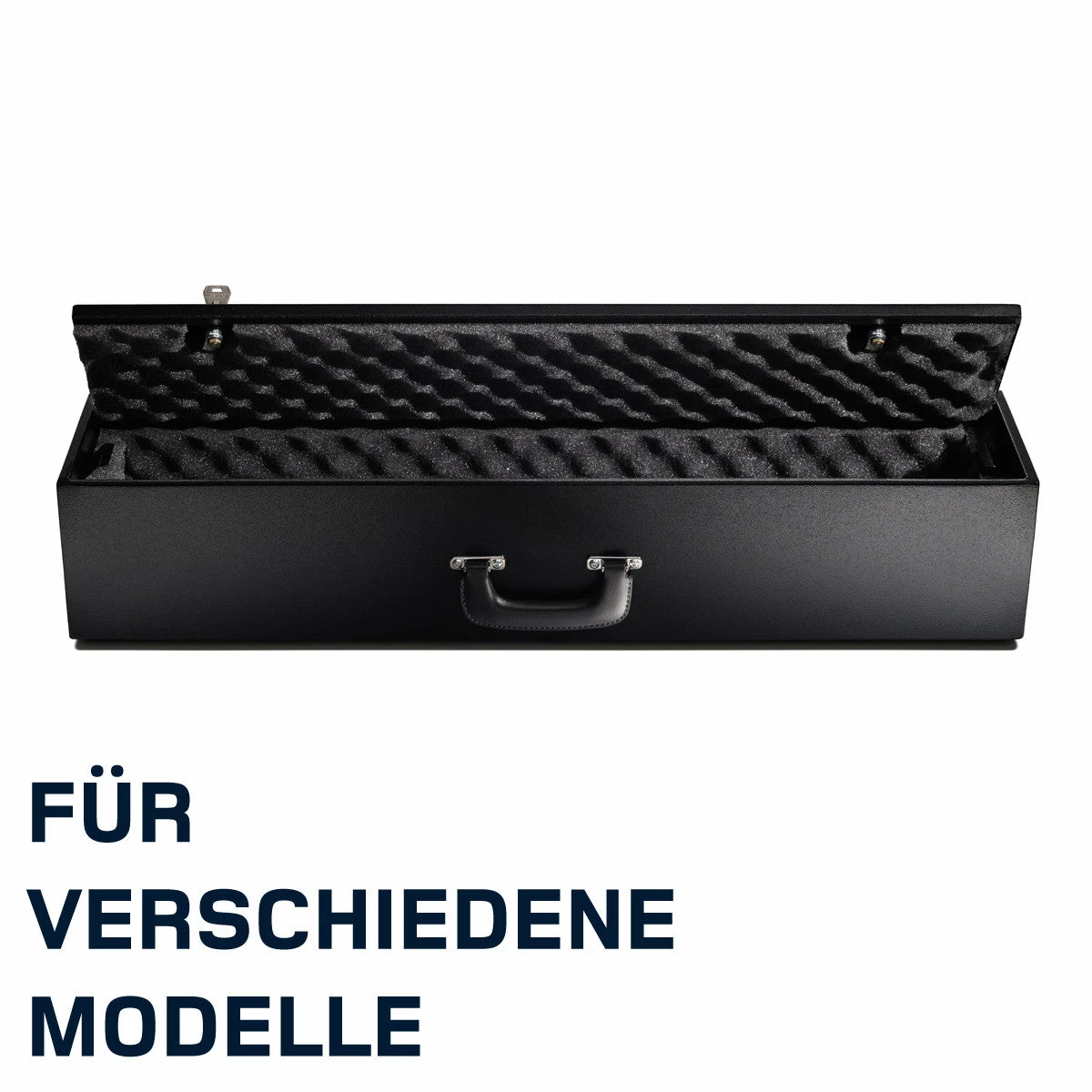 Waffenbox aus kräftigem Stahl mit zwei Sicherheitsschlössern.